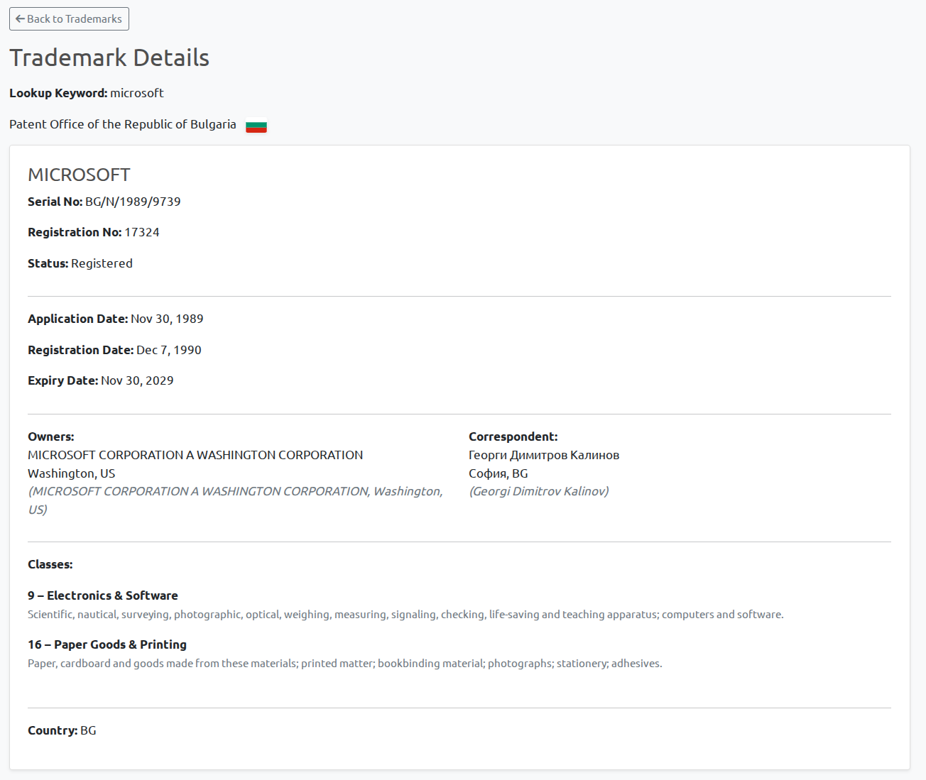 Example: BGIPO Trademark Detail View